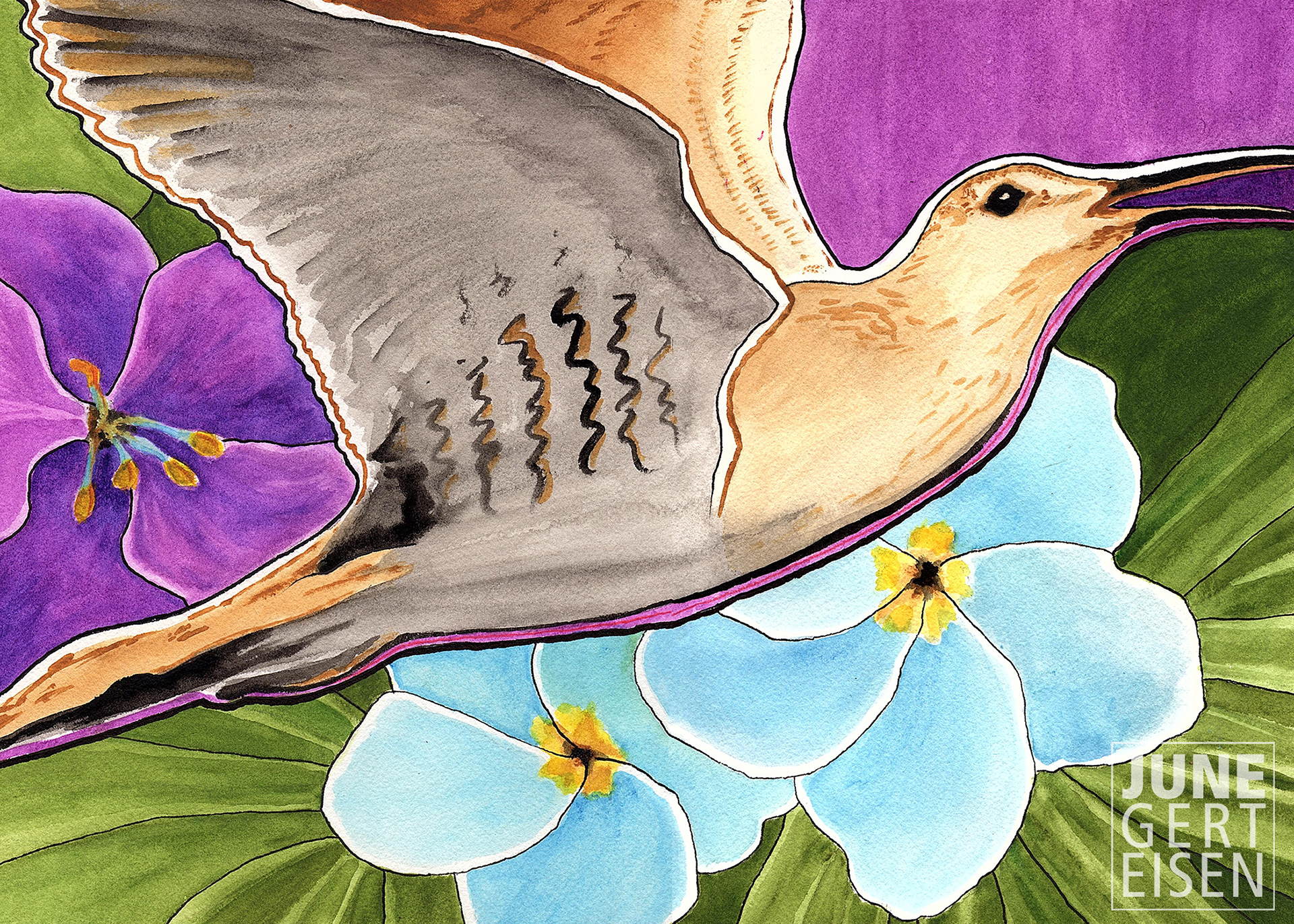 Colored pencils provide the most control of all the art mediums and yet can be the most demanding. My watercolors often emphasize the freedom and joy of color and gestural expressive movement.